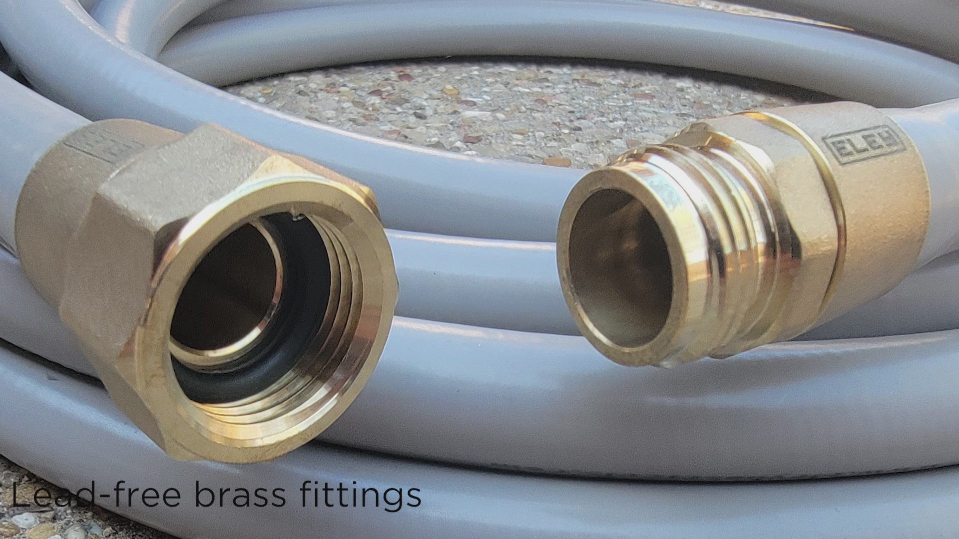 ELEY garden hose is made from UV-stabilized FDA and NSF grade polyurethane material. Combine that with our crush-proof, lead-free machined brass fittings, and ELEY hoses are 100% drinking-water-safe. Even the rubber gaskets are made from drinking-water safe material. For more detailed information, see What You Need to Know About Drinking Water Safe Garden Hose.