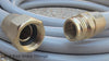 When a hose with aluminum fittings is connected to brass and gets wet, it can cause galvanic corrosion—a battery-like reaction that creates a white buildup that can seize the threads together. Brass-to-brass helps keep connections smooth and easy to remove.