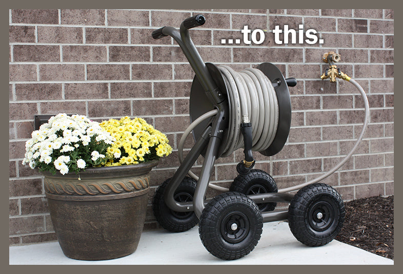 - This kit converts the ELEY® two-wheel cart garden hose reel (Models 1043 and 1043X) into a 4-wheel cart.
