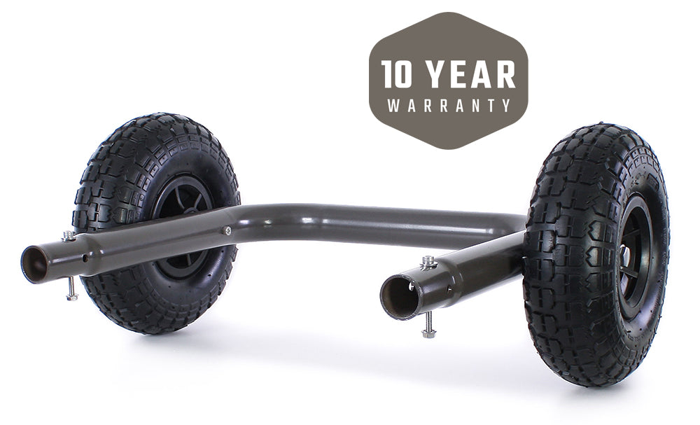 The ultra-strong 1-1/2-inch aluminum tubing frame is coated with the same durable powder-coat Spartan bronze finish as the hose reel. Two 10-inch foam-filled, flat-free tires match and complement the rear hose reel tires. Solid aluminum tire spindles, along with stainless-steel hardware, complete the components of this kit, which is backed by ELEY's industry-leading 10-year warranty.