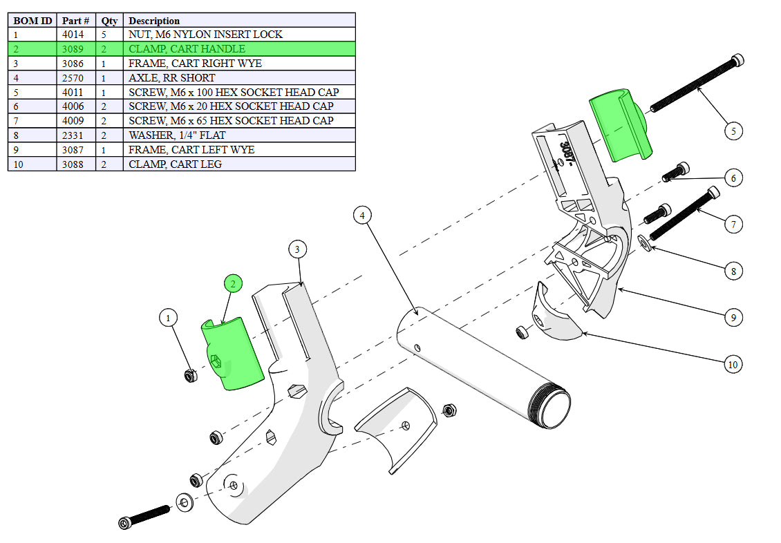 This clamp is used on the Item 3096A Frame Wye assembly to attach the push-pull handlebars to the main body of the cart frame. Each cart reel requires two of these clamps, one for each push-pull handle. This item is sold individually, not as a set of two. See the exploded view in the photo gallery for a visual explanation.