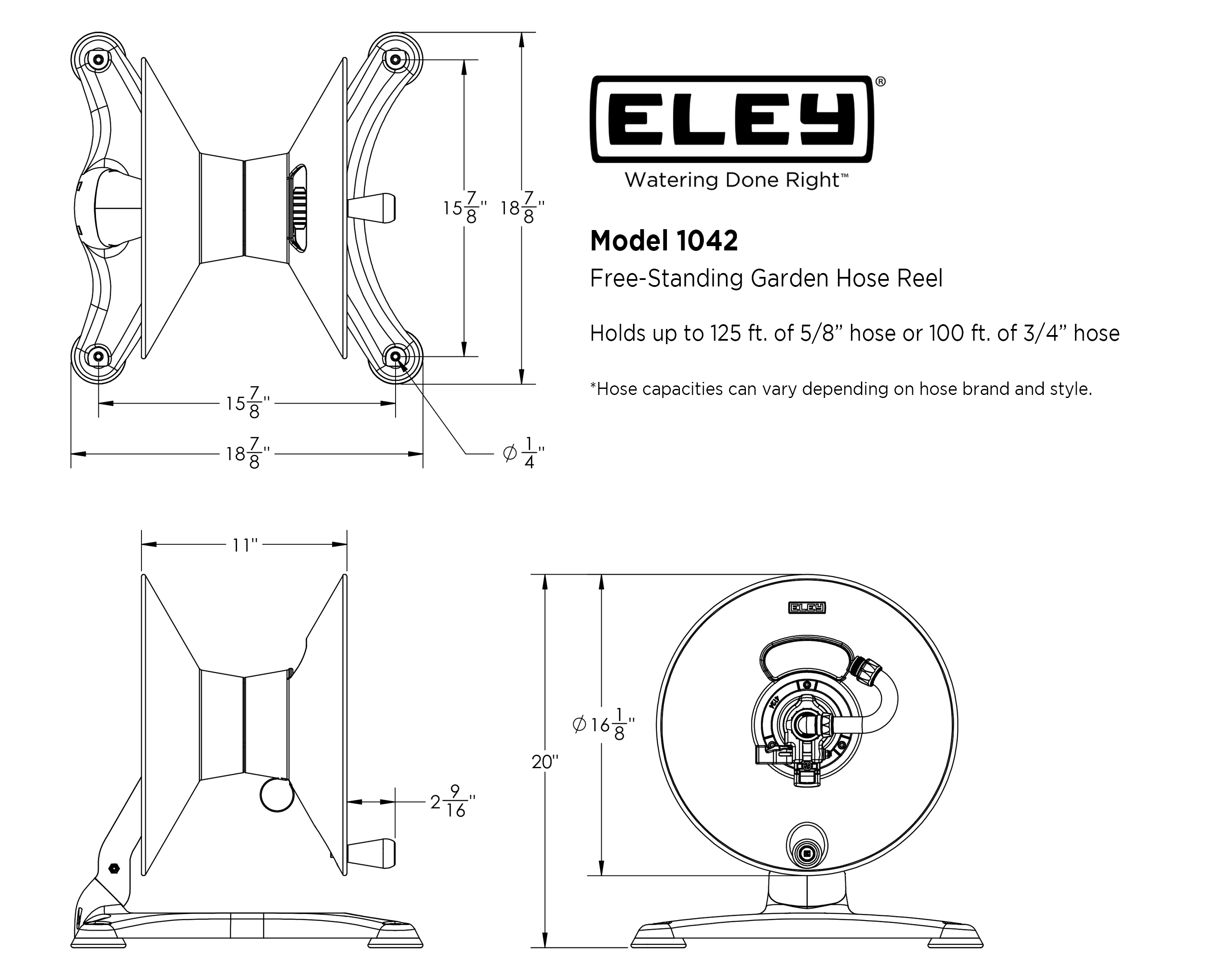 These FAQs are specific to the free-standing reel, model 1042. For general FAQs about all ELEY reels, visit our Garden Hose Reels FAQs.