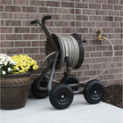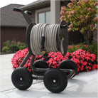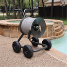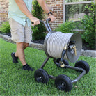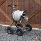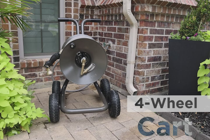 The ELEY 4-wheel portable garden hose reel is our 2-wheel cart reel, modified with our quad-wheel kit during assembly, and converted into our 4-wheel model. The 4-wheel design offers more stability and easier push-pull mobility compared to the tip-and-go maneuvering of the 2-wheel model. Watch this short video to see a quick introduction to both models. If you think the 2-wheel model might be a better fit for you, visit our 2-wheel garden hose reel cart page.