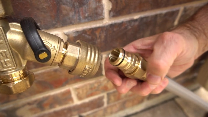 With our innovative Push-n-Click design, simply push the plug into the socket until you hear (or feel) the "click of the stainless-steel pins engaging the groove on the plug for a firm, water-tight seal. Releasing the connection is just as easy as a slight 1/8-inch pull-down on the socket's Easy-Release-Sleeve will disengage the pins and free the two connector pieces.