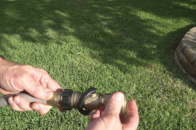 A versatile, commercial-duty shut-off valve that can attach to garden hoses, faucets, or watering tools to provide precise flow control away from the spigot.