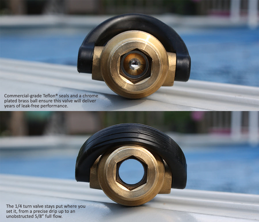 The oversized, 1/4-turn, "Stay-Put" flow control lever is easy to grab and adjust and stays right where you set it for precise water flow control. Ultra-durable and maintenance-free Teflon® seals keep the valve operating smoothly and leak-free for over ten years, guaranteed