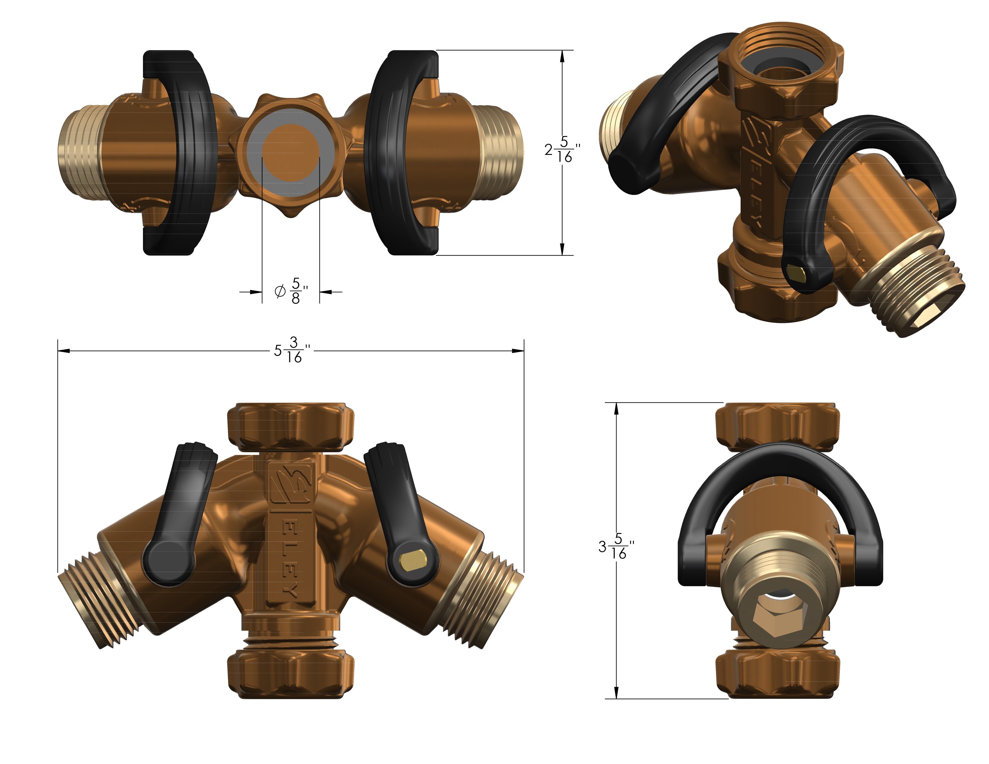Because this splitter is produced with standard 3/4-inch Garden Hose Threads (GHT), any brand of garden hose or quick-connectors can be threaded directly to the ports. Adding an ELEY quick connector to each port can eliminate the time-consuming, often difficult & frustrating chore of constantly threading and unthreading your garden hose onto and off the splitter. It'll make your outdoor watering tasks more efficient and enjoyable. DO NOT attach hoses equipped with aluminum fittings to this brass splitter, as galvanic corrosion (fused together) will eventually occur.