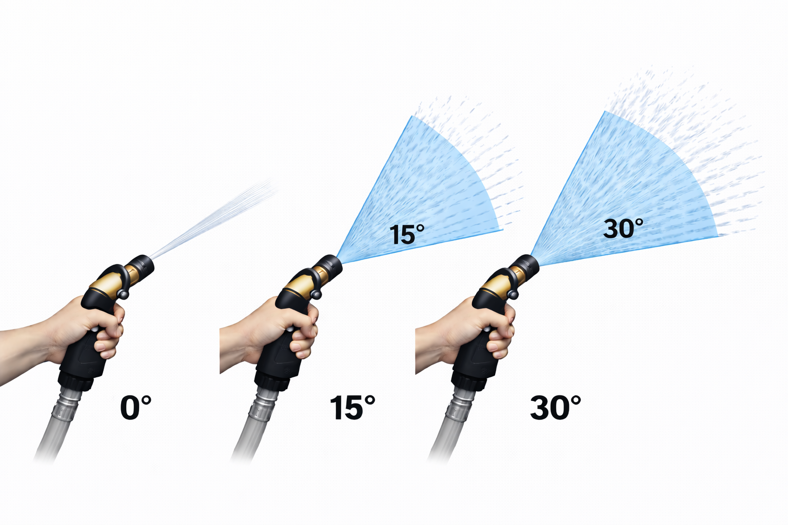 - 30° fan pattern for delicate surfaces, like vehicles